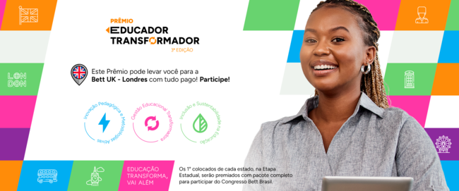 Seguem abertas as inscrições para a 3ª edição do Prêmio Educador Transformador, voltado para professores e gestores educacionais de todo o Brasil. Realizado pelo Instituto Significare, Bett Brasil e Sebrae, o Prêmio deste ano apresenta inovações significativas em relação a edições anteriores e a outros prêmios da área, posicionando-se como um catalisador para a transformação da educação por meio da inovação e da educação empreendedora.