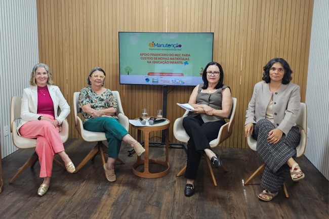 Participaram da transmissão: Rita Coelho, coordenadora-geral de Educação Infantil do MEC; Luciana Morais, Genilda Lima e Bruno Tovar, da Coordenação-Geral de Educação Infantil do MEC.