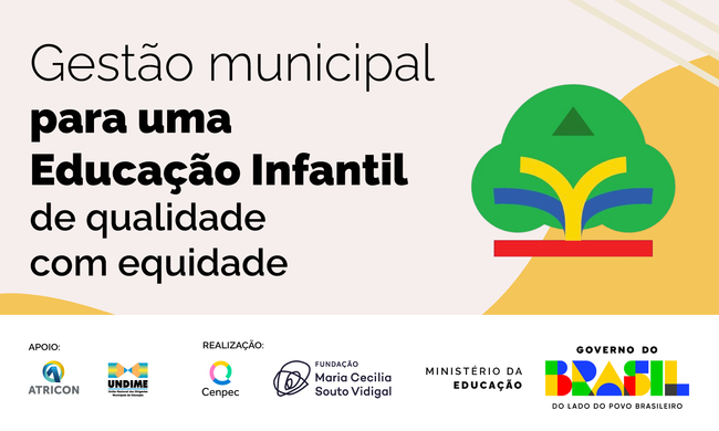 Foi lançado nesta quarta-feira, 17 de setembro, e já está disponível o curso on-line "Gestão municipal para uma Educação Infantil com qualidade e equidade" que apoiará os gestores municipais na implementação das Diretrizes Operacionais de Qualidade e Equidade para a Educação Infantil. A formação é uma iniciativa do Ministério da Educação (MEC) e da Fundação Maria Cecilia Souto Vidigal, com a realização técnica do Cenpec, e apoio da Undime e da Comissão de Educação da Atricon.