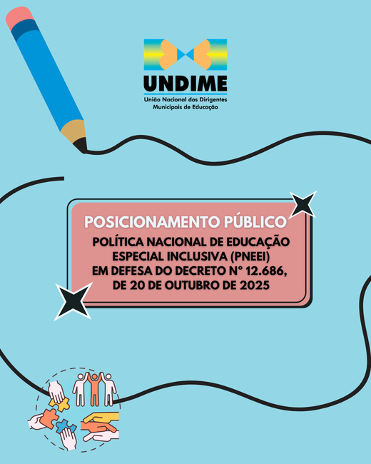 A União Nacional dos Dirigentes Municipais de Educação (Undime), instituição que reúne os gestores responsáveis pela oferta da educação básica pública em todos os municípios do país, reconhece a importância do Decreto nº 12.686, de 20 de outubro de 2025, que institui a Política Nacional de Educação Especial Inclusiva (PNEEI), para a consolidação de um sistema educacional que reafirme o direito à educação para todas as crianças, adolescentes, jovens, adultos e idosos, com base na igualdade de oportunidades, na diversidade e na inclusão.